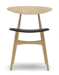 Hans J. Wegner’s light, sculptured CH33P chair is based on the ideas and shapes which are typical of his best designs. The chair was designed in 1957 for Carl Hansen & Søn, where it was manufactured for ten years. With a break of about 45 years, production resumed in 2012. CH33P’s design has character and clear organic forms. The elegant chair’s height, depth and angles are carefully set to fit the occupant and the dimensions of the wood are chosen according to the factors Wegner found necessary. The characteristically curved backrest is a form-pressed veneer featuring visible round cover caps. The Wegner chair’s wooden construction has a vibrant appearance which lends itself to modern interiors. CP33P has a padded seat upholstered in fabrics or leather which increases comfort and accentuates its luxurious appearance. The CH33T version of the chair has a veneer seat with a choice of different wood types and a variety of colours.